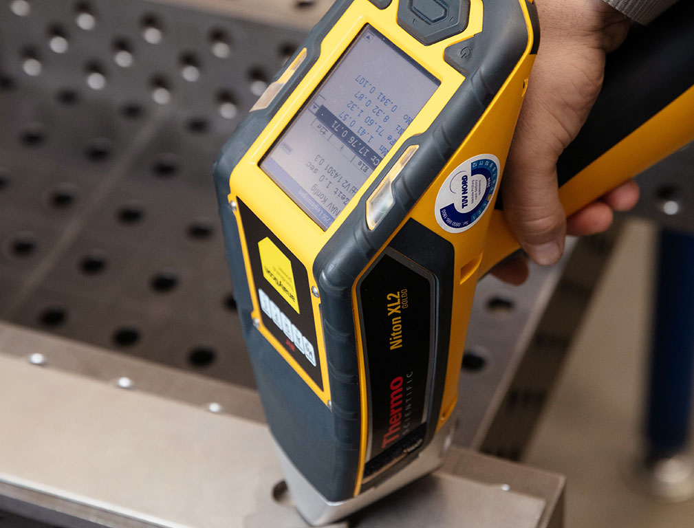 Darüber hinaus verfügt unser Unternehmen über die Technologie der äußerst zuverlässigen Röntgenfluoreszenzanalyse. Mit diesem RFA-Screening können wir Werkstoffe oder Legierungen bestimmen und Analyseberichte für Sonderwerkstoffe erstellen.