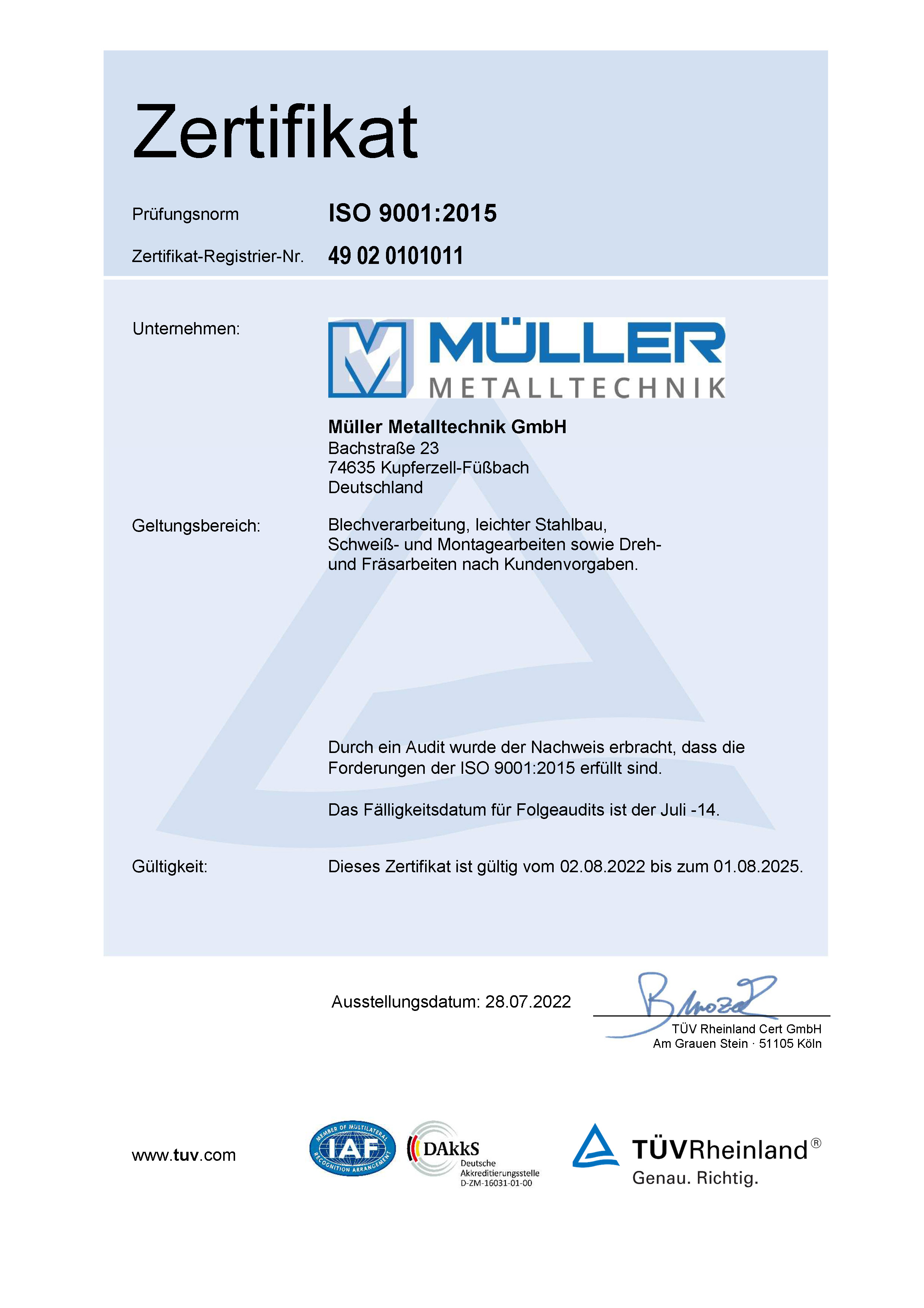 Seit 2004 sind wir ein zertifiziertes Unternehmen nach DIN EN ISO 9001:2015. Auf dieser Qualifizierung ruhen wir uns nicht aus, sondern arbeiten täglich an Verbesserungsprozessen und einer kontinuierlichen Qualitätssteigerung. Wir sind sogar in der Lage unsere Maschinendaten individuell auf unsere Kundenwünsche anzupassen, um das perfekte Ergebnis für Sie zu erzielen.